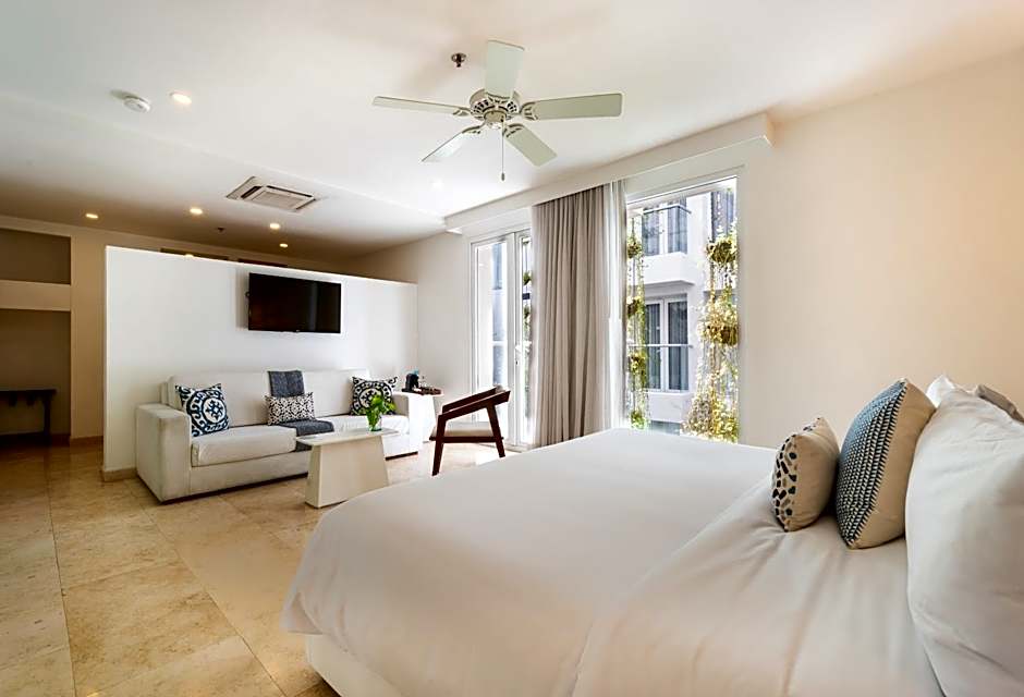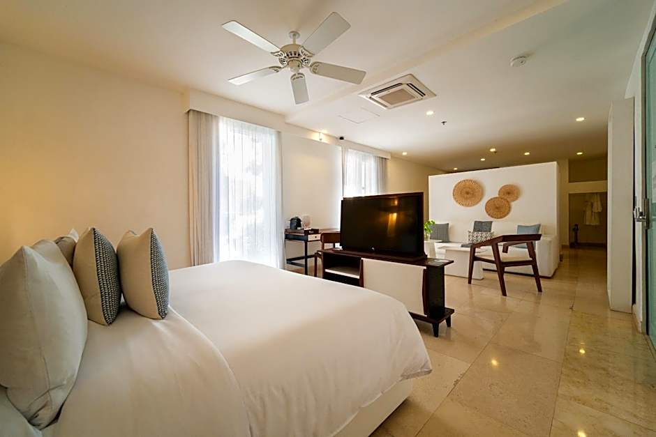 The spacious suite offers air conditioning, a mini-bar, a tea and coffee maker, a seating area and a TV with cable channels. The unit offers 1 bed.