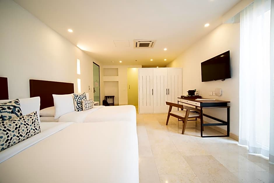 Elevated above the bustle, the rooftop outdoor pool beckons with a shallow end and sweeping city views. A sun deck, terrace, and balcony areas offer plenty of space to soak up Cartagena’s sunshine or unwind with a drink as the evening light fades.